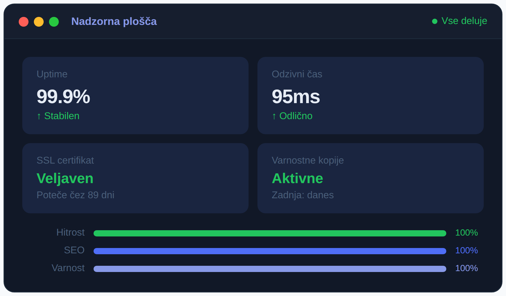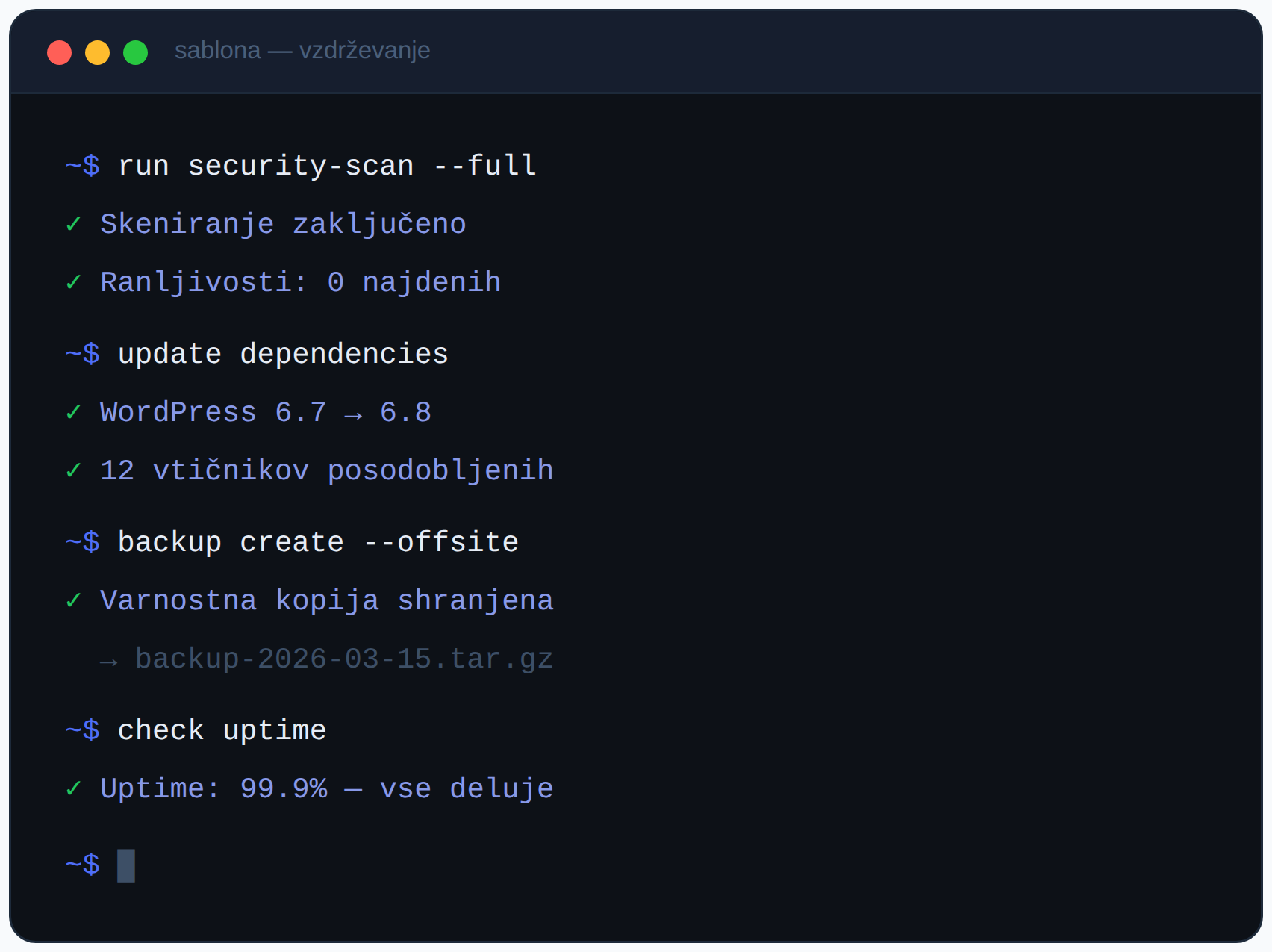 Skrbimo za redno posodabljanje vaše aplikacije, optimizacijo delovanja, SEO in ustrezno zaščito